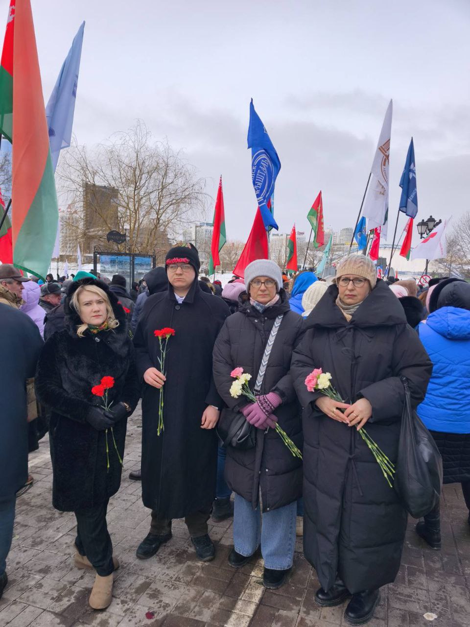 Также работники государственного предприятия «Минсктранс» приняли участие в памятном митинге и народном возложении, которые состоялись на Острове Мужества и Скорби. Они почтили память воинов-интернационалистов и возложили цветы.