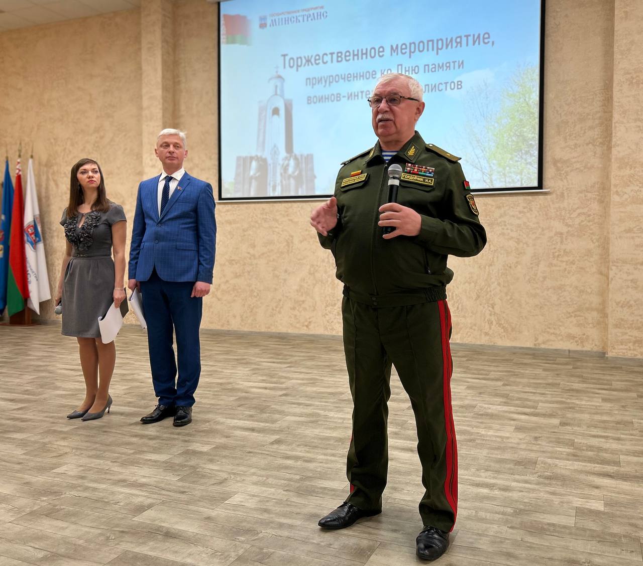 Почетным гостем мероприятия стал депутат Палаты представителей Национального собрания Республики Беларусь Гордейчик Иван Аркадьевич. С вступительным словом в церемонии чествования выступил непосредственный участник и очевидец военных событий, заместитель генерального директора государственного предприятия «Минсктранс» Александр Михайлович Данченко. Слова благодарности и почтения за мужество и героизм, за мирное небо над головой прозвучали от председателя Объединенной профсоюзной организации предприятия Олега Эдуардовича Матвеенко.