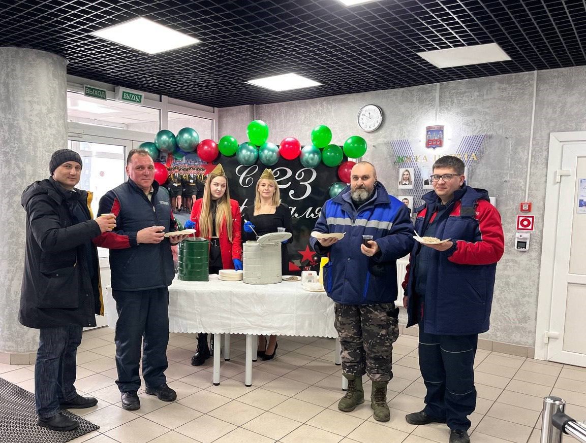 23 февраля – День защитников Отечества и Вооруженных Сил Республики Беларусь. В честь этого праздника представительницы прекрасной половины человечества с самого утра оригинально и позитивно поздравили своих коллег – мужчин. Во всех филиалах и в администрации государственного предприятия «Минсктранс» прошли поздравительные мероприятия.