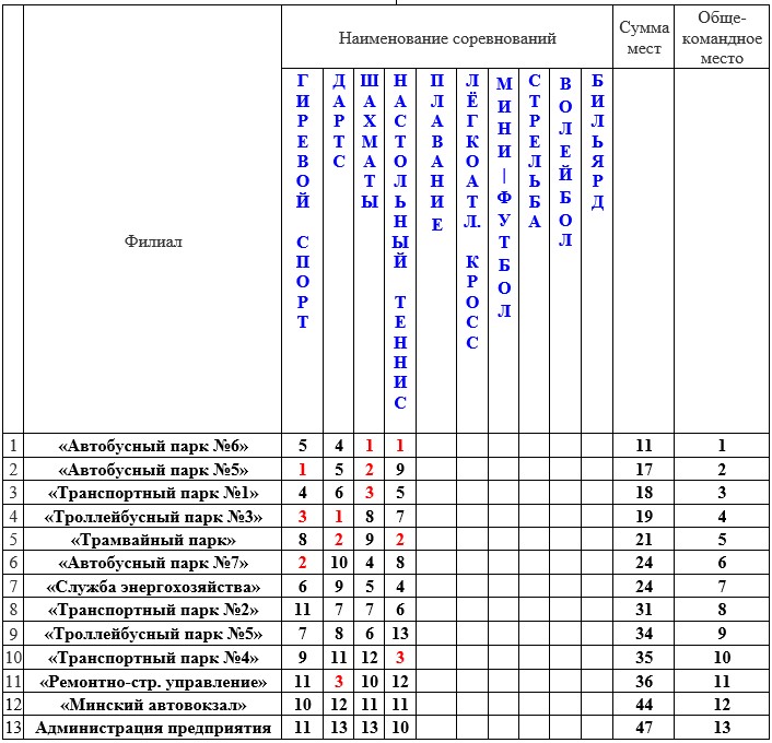 Календарный план проведения спартакиады государственного предприятия Минсктранс на 2026 год