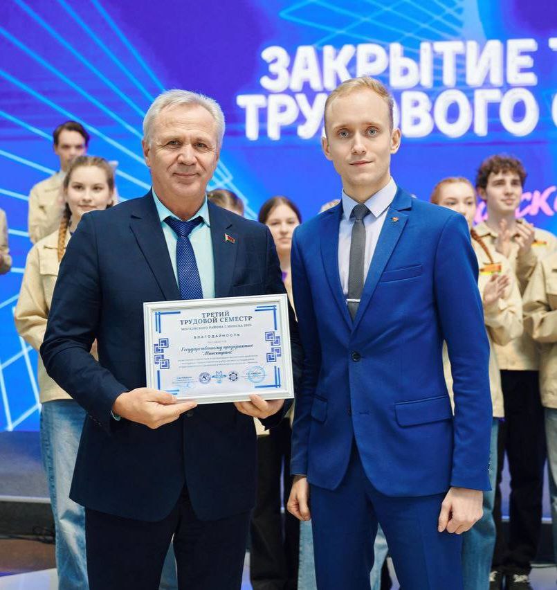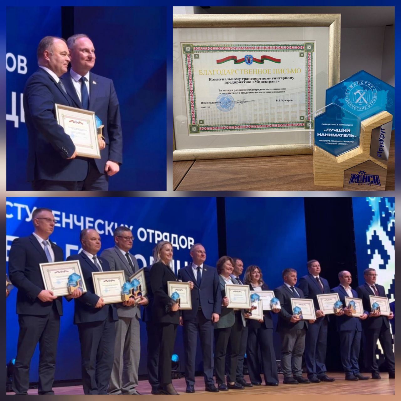 За вклад в развитие студотрядовского движения и содействие в трудовом воспитании молодежи государственному предприятию «Минсктранс» вручили Благодарственное письмо. Предприятие отмечено в номинации «Лучший наниматель».