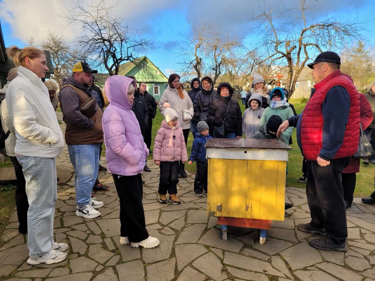 Далее сотрудники филиала отправились в агроусадьбу «Мир Пчел». Здесь они погрузились в занимательный мир производства меда, узнали о традициях бортничества от истоков до современных пчеловодческих методик, познакомились с непростым устройством улея.