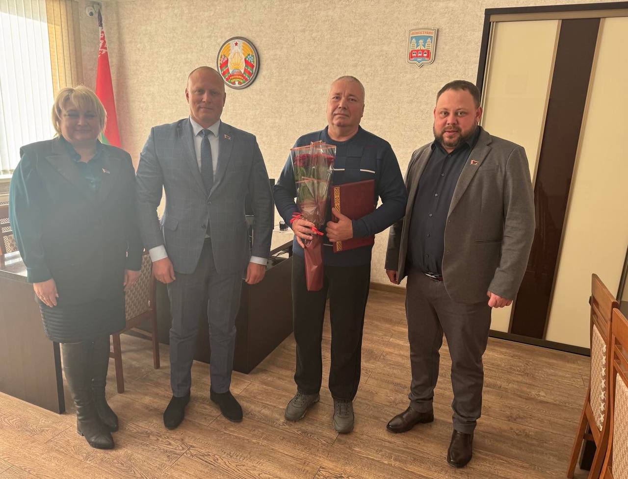 В филиале «Троллейбусный парк №5» с юбилеем поздравили водителей троллейбуса Журковского Николая Николаевича и Буйницкого Олега Казимировича, инженера Крученок Тамару Михайловну.