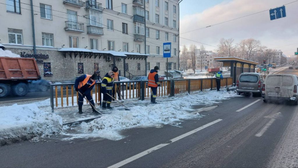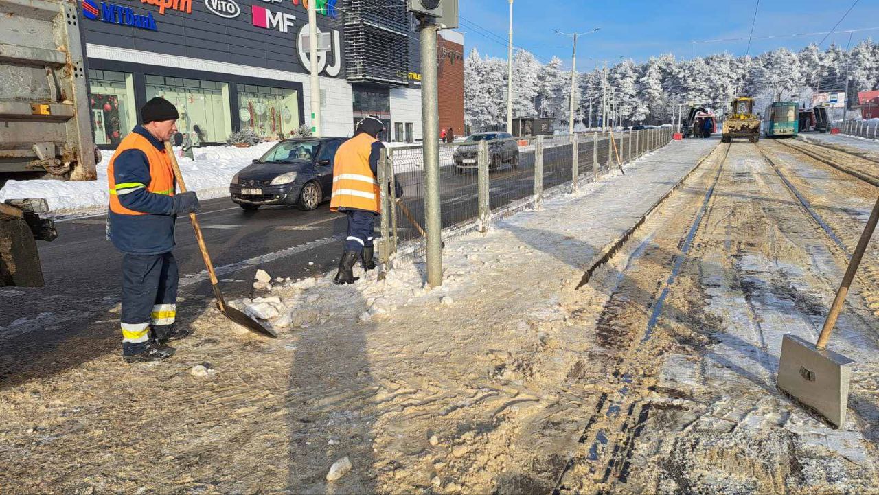 Работники филиала «Трамвайный парк» в субботу, 17 января, выполнили работы по уборке снега с трамвайных остановочных пунктов и пешеходных связей к ним, тем самым обеспечивая безопасный и удобный доступ для пассажиров.