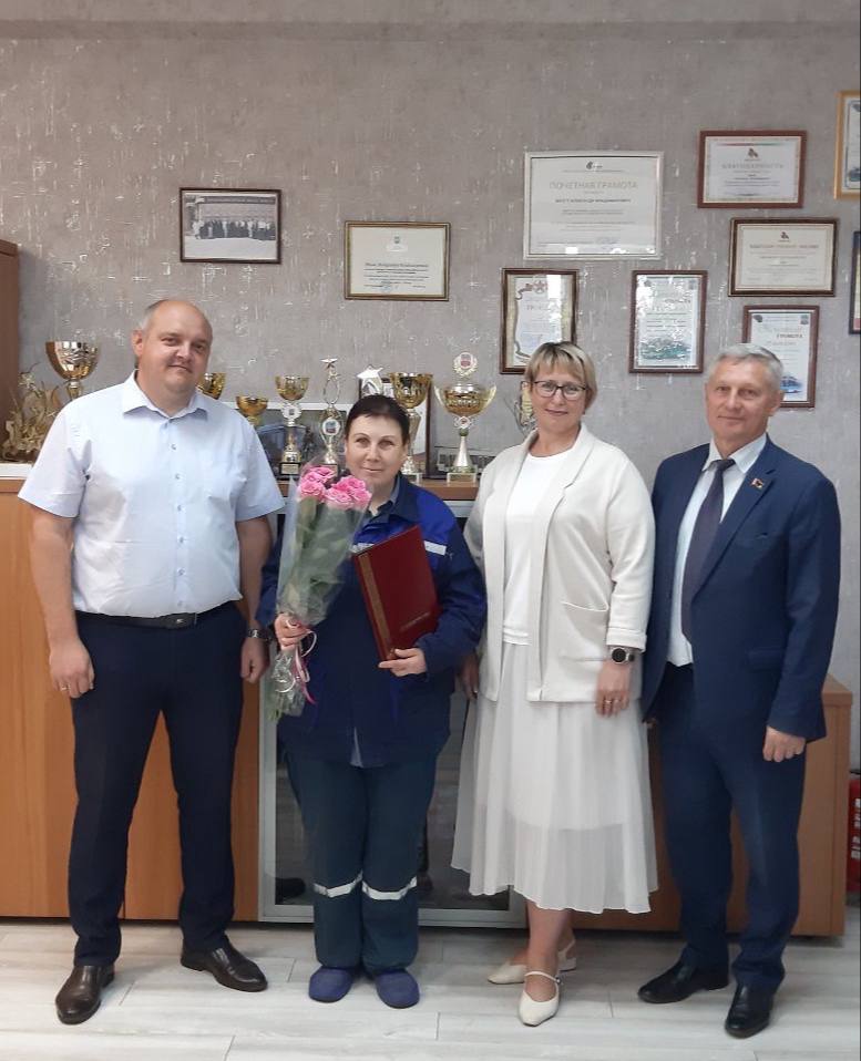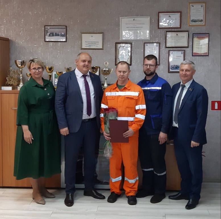 В филиале «Транспортный парк №2» торжественно проводили на заслуженный отдых уборщика Рыжкову Ирину Николаевну. Также с юбилеем поздравили слесаря ремонтника ОГМ Савицкого Стефана Брониславовича, водителей автомобиля Качанова Василия Борисовича и Лиходиевского Сергея Геннадьевича. С присвоением почетного звания «Ветеран труда предприятия» поздравили мастера РМ Ефимика Дениса Александровича.