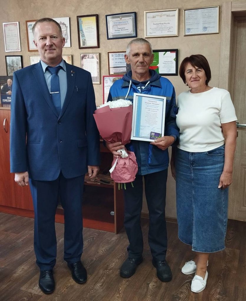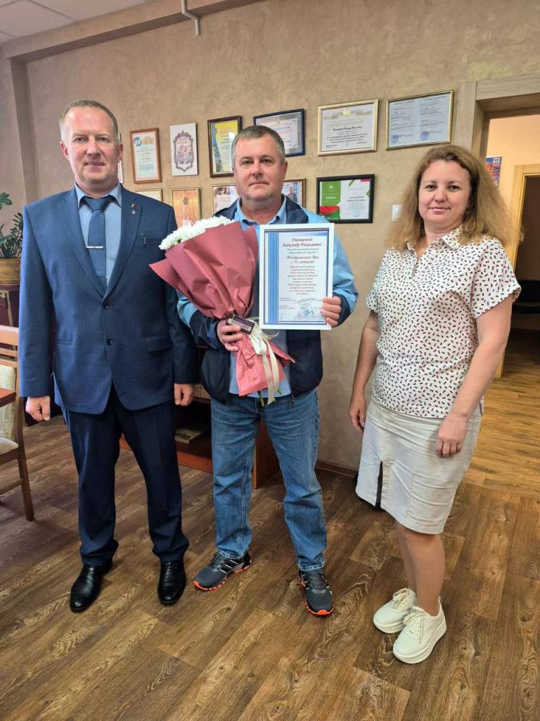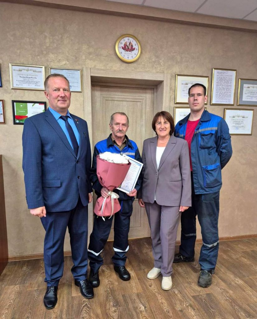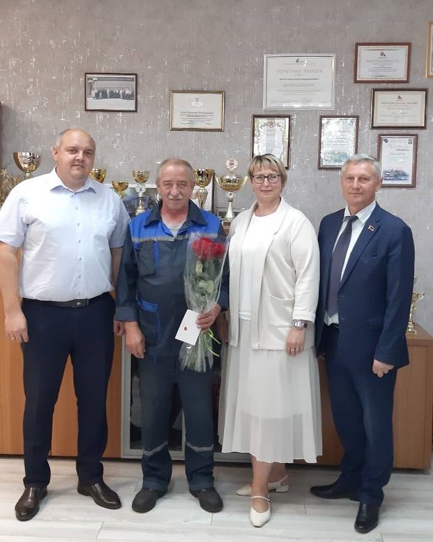 В филиале «Транспортный парк №1» с 40-летним стажем работы на предприятии поздравили водителя автомобиля Веробей Анатолий Петрович.