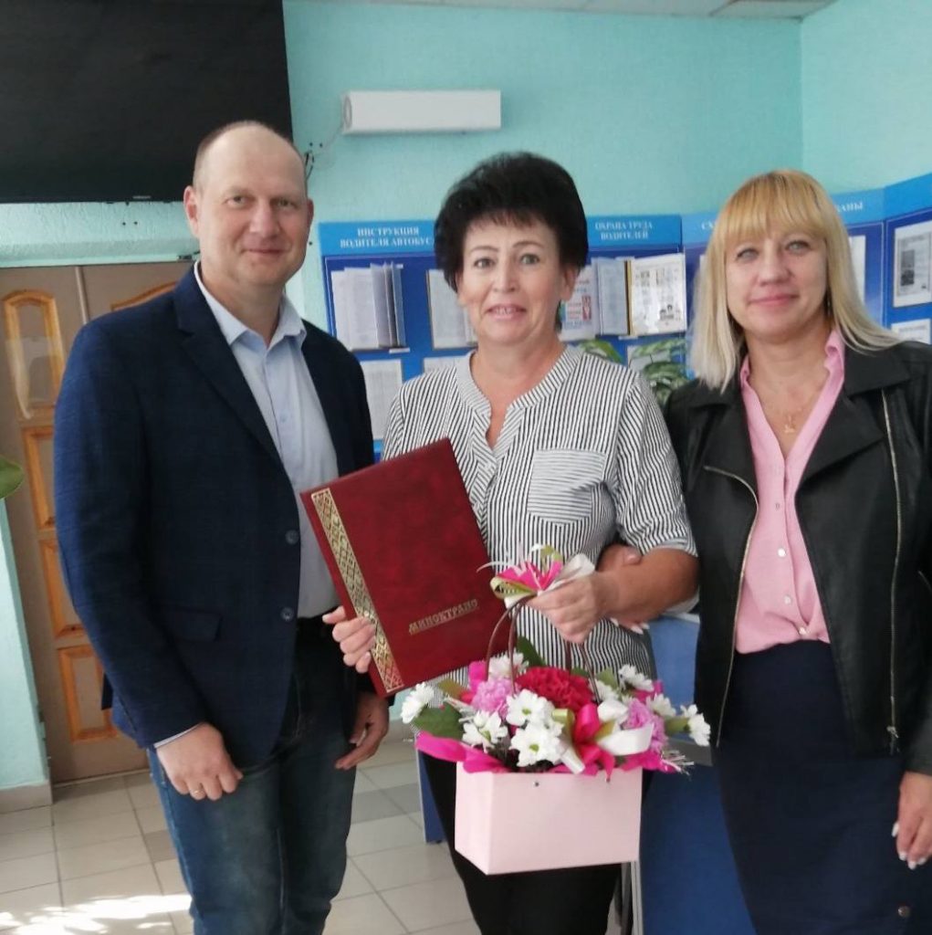 В филиале «Автобусный парк №5» с 50-летним стажем работы на предприятии поздравили водителя Курейчика Александра Федоровича. Также с юбилеем поздравили кассира Михайлову Ирину Леонидовну.