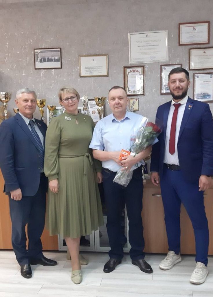 В филиале «Транспортный парк №2» с 40-летним стажем работы на предприятии поздравили водителя троллейбуса Валчека Василия Анатольевича. Также с юбилеем поздравили инженера ОАСУП Адащик Любовь Владимировну, водителя автобуса Андреева Вадима Арнольдовича и слесаря РМ Павловича Сергея Леонидовича.