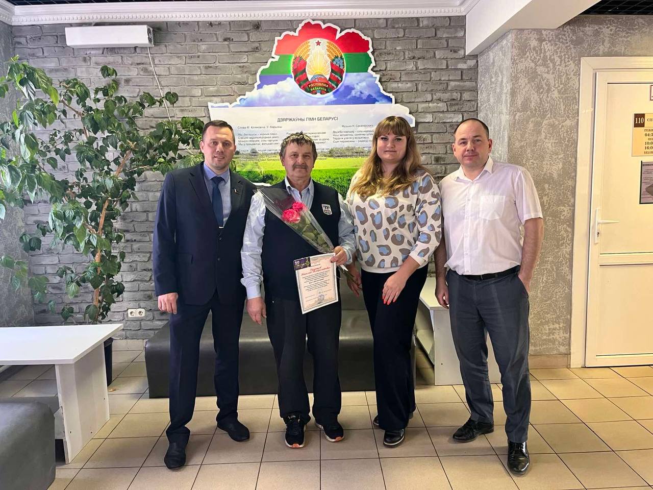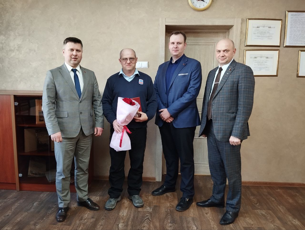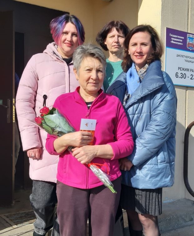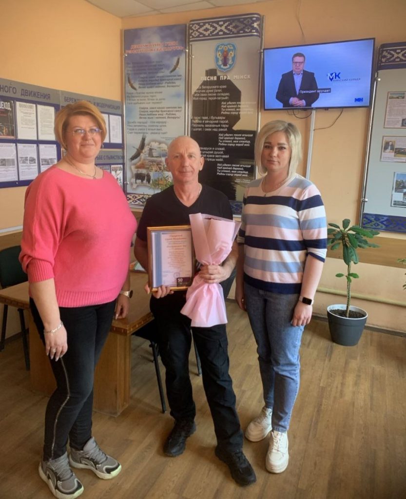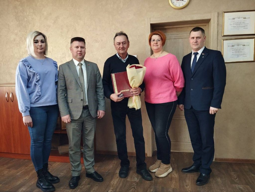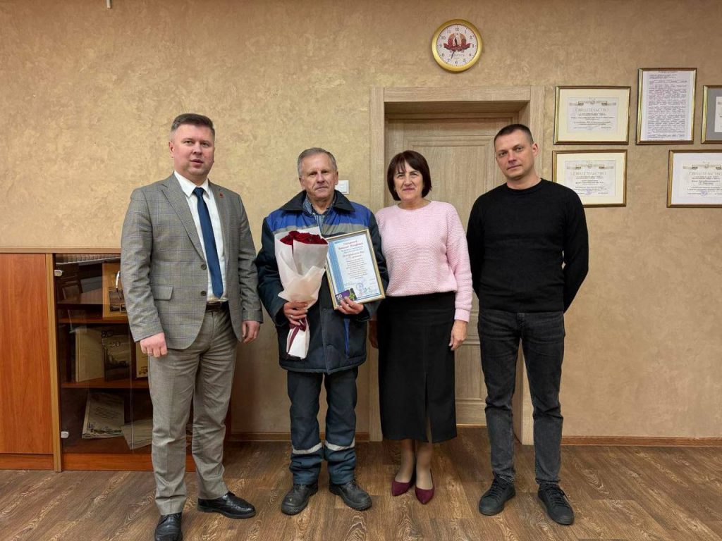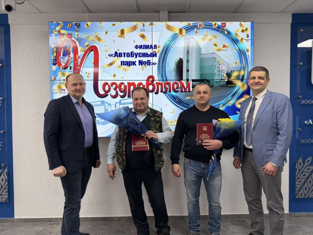 В филиале «Троллейбусный парк №5» с юбилеем поздравили водителей Реута Виктора Марьяновича и Глинского Сергея Александровича, контролера электромонтажных работ Тышкевича Вячеслава Иосифовича. С 40-летним стажем работы на предприятии поздравили Цубикова Сергея Ивановича.