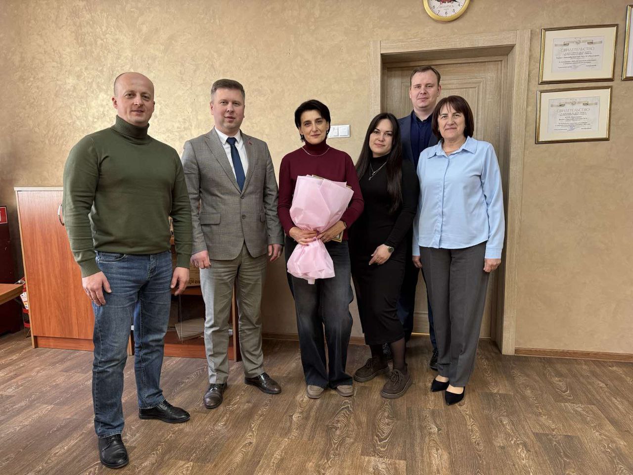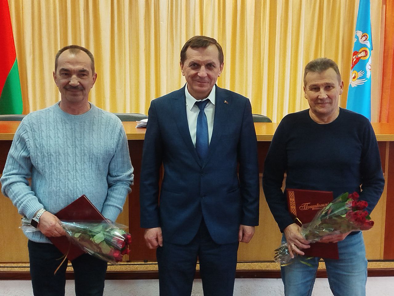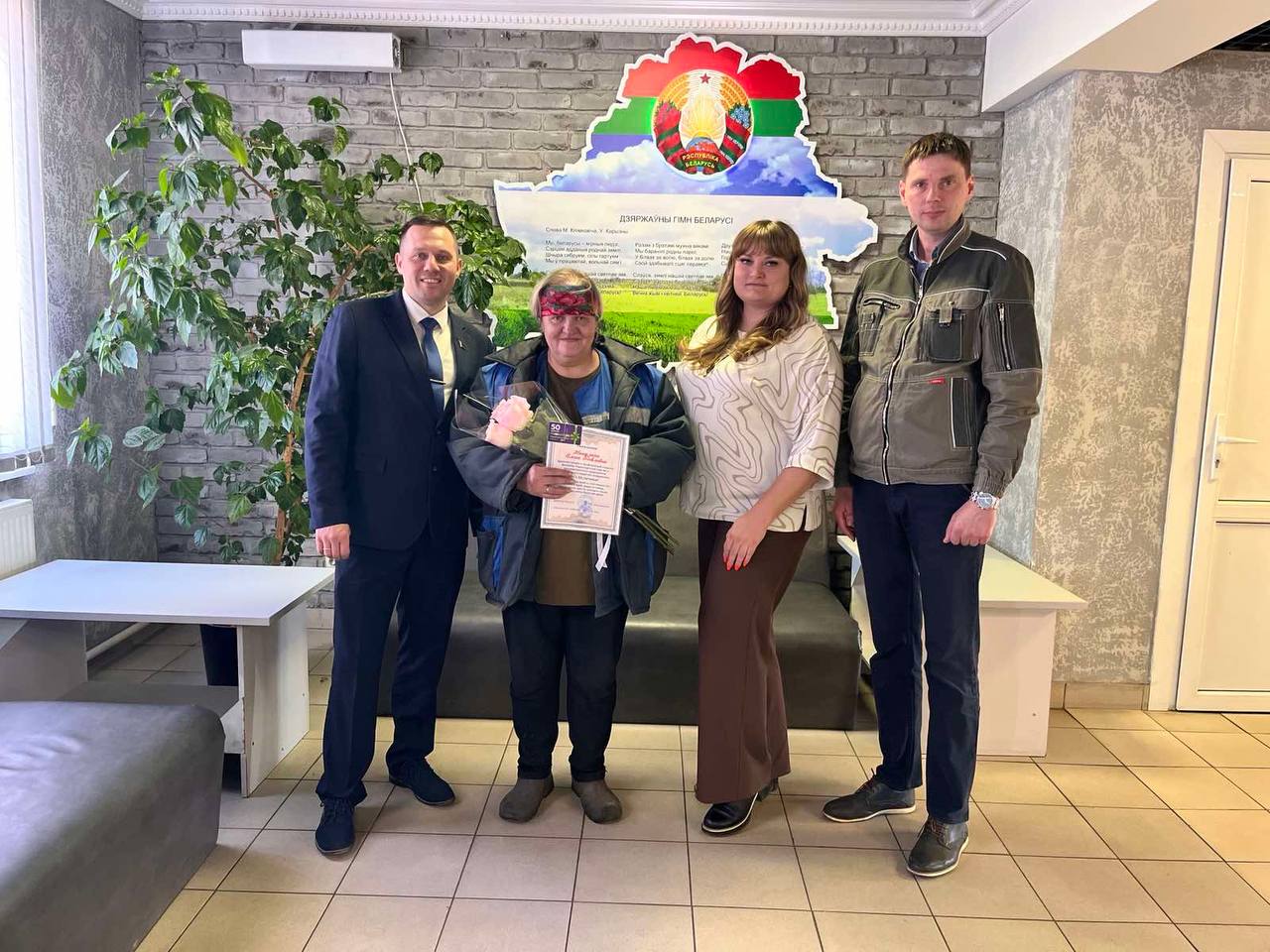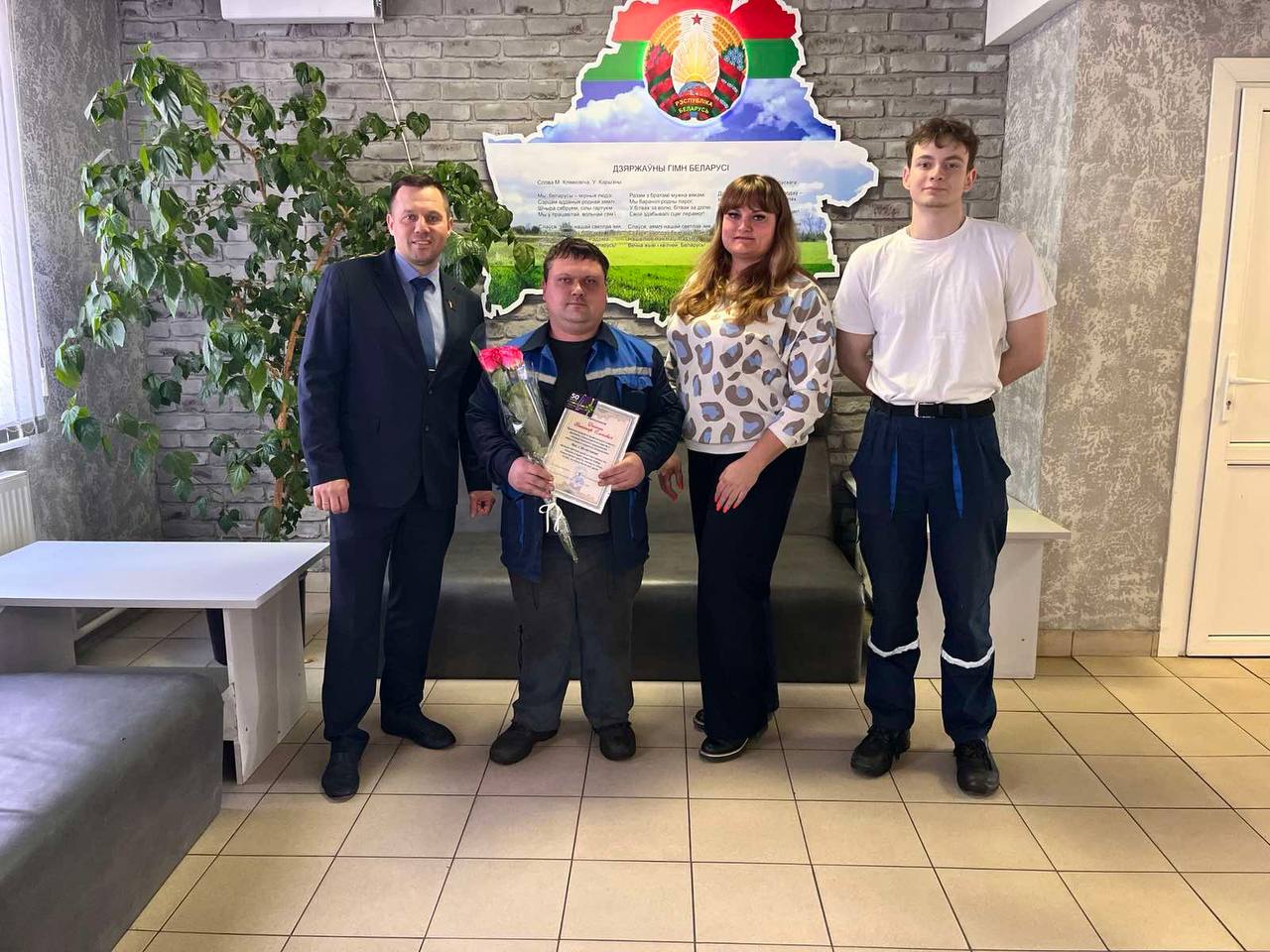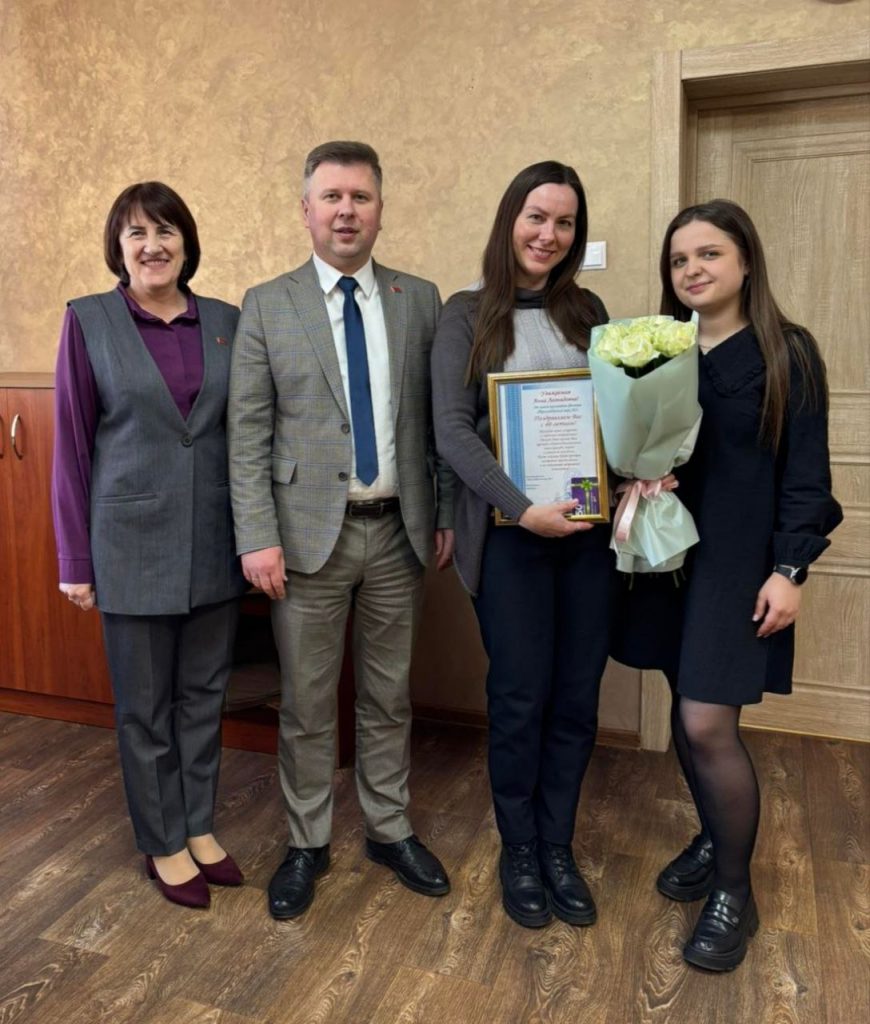 В филиале «Троллейбусный парк №5» с юбилеем поздравили водителей Реута Виктора Марьяновича и Глинского Сергея Александровича, контролера электромонтажных работ Тышкевича Вячеслава Иосифовича. С 40-летним стажем работы на предприятии поздравили Цубикова Сергея Ивановича.