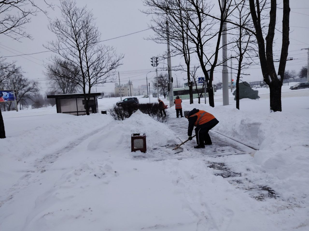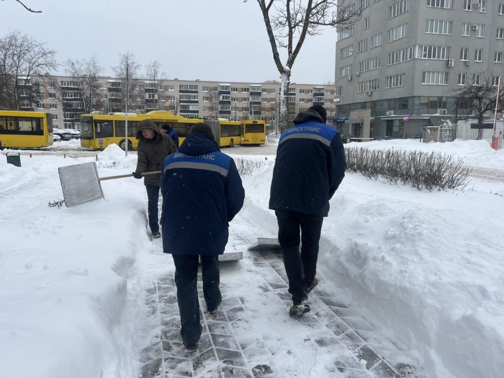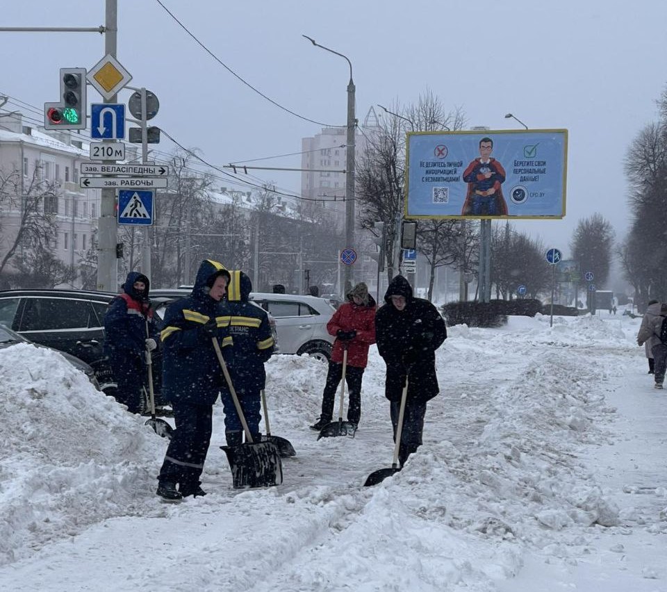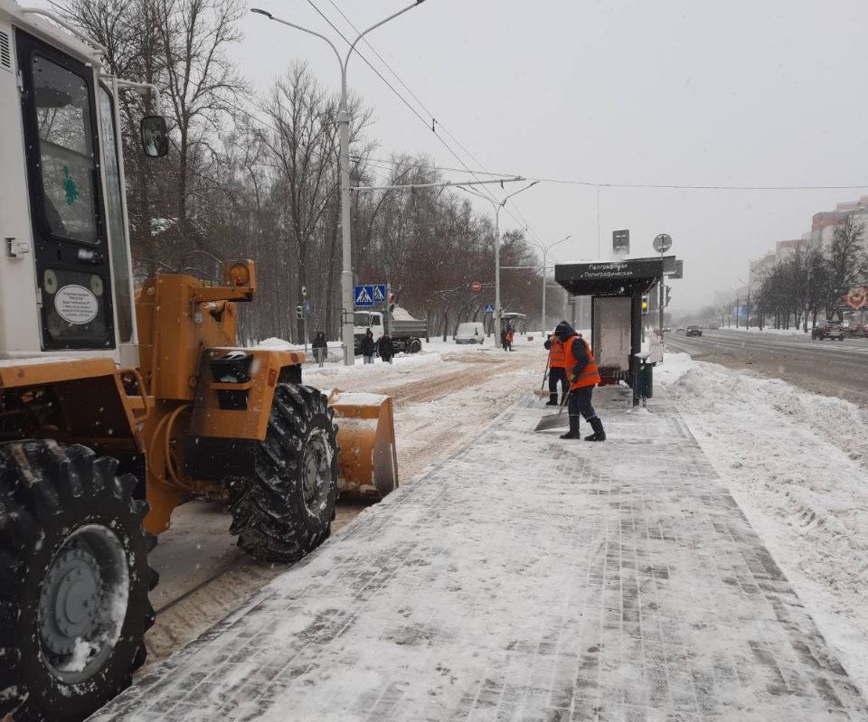 Беларусь накрыл мощный снежный циклон. Усиленно работают коммунальные службы. Со снежной стихией на закрепленных территориях справляются и работники «Минсктранса».