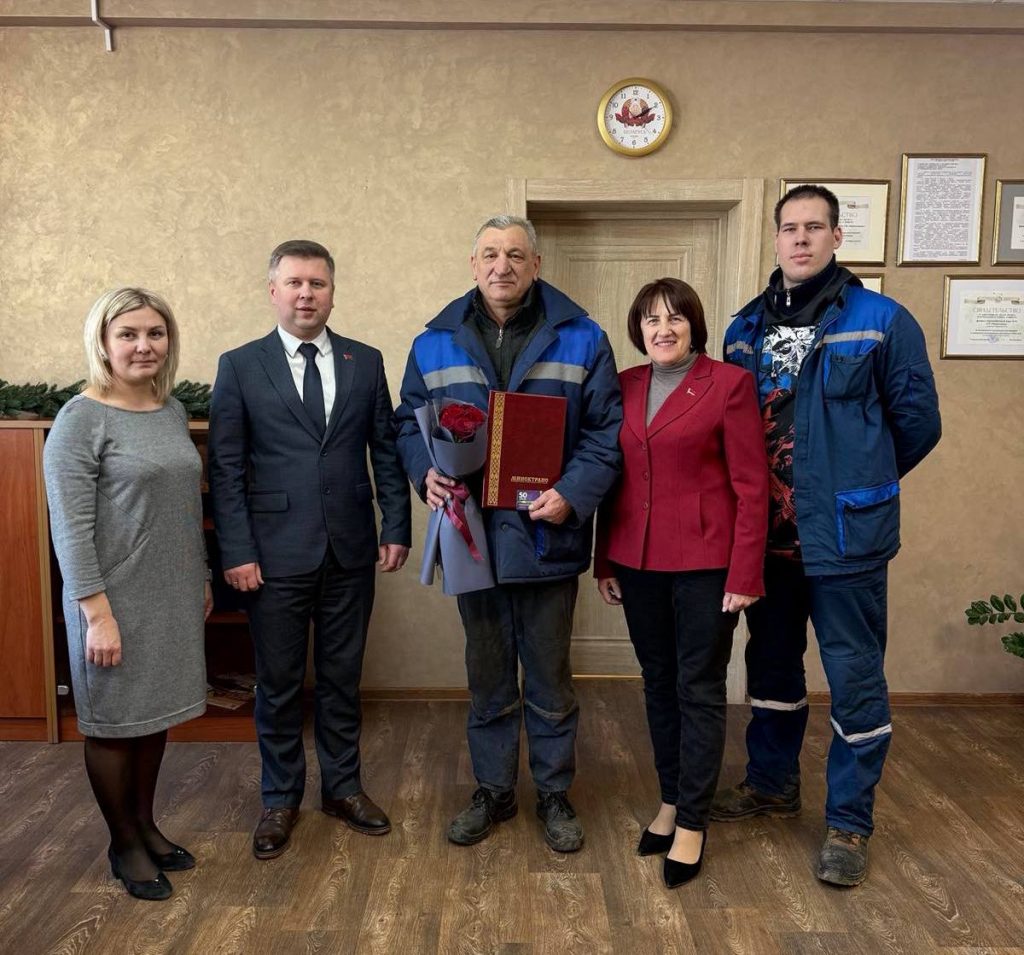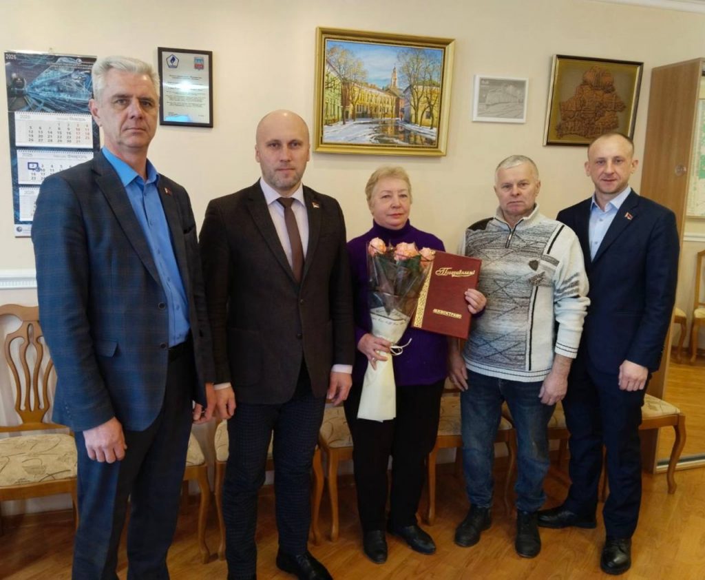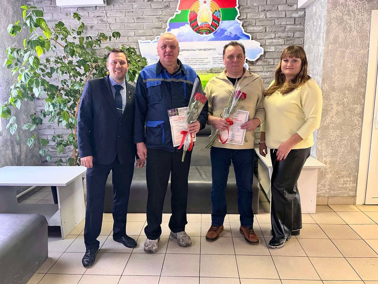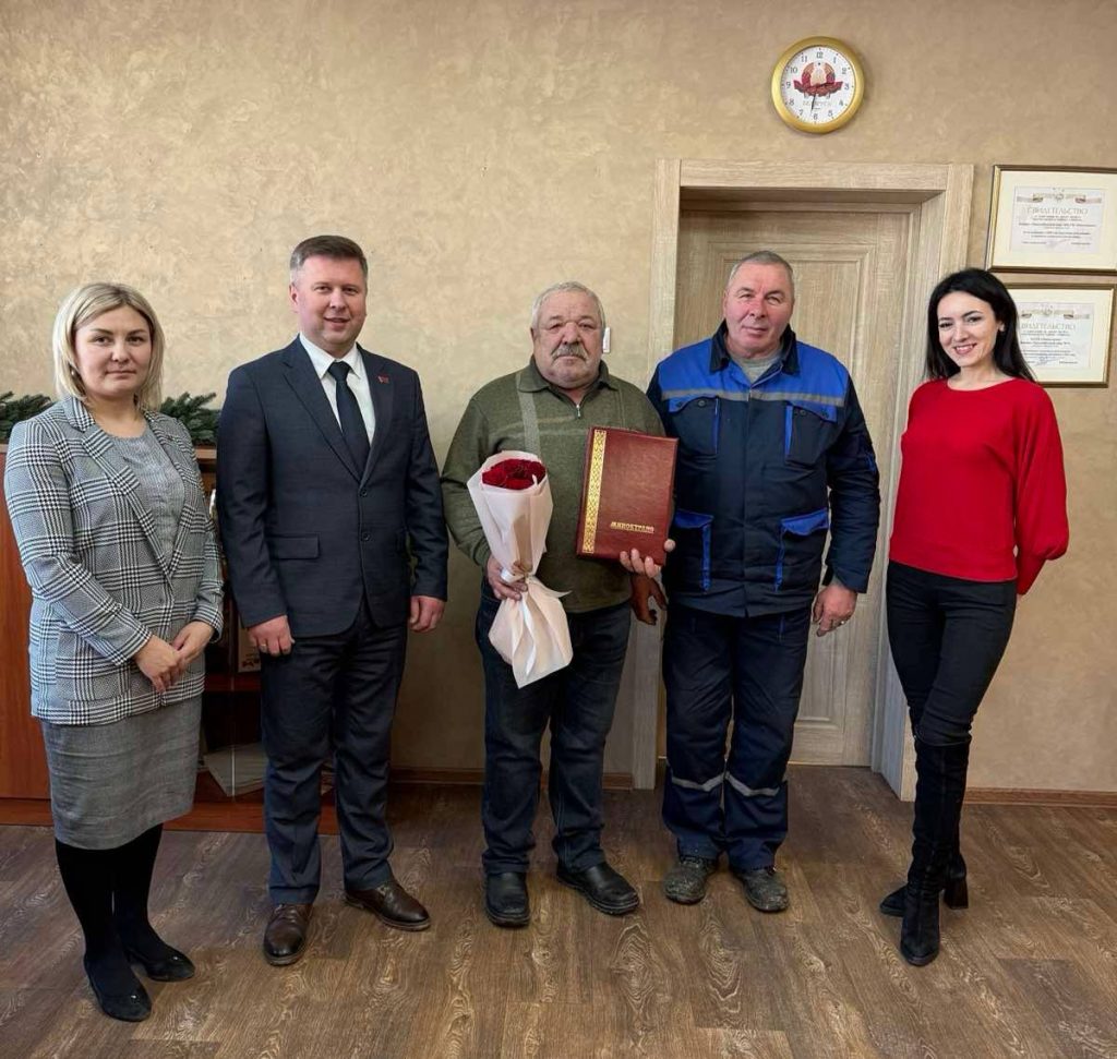 В филиале «Троллейбусный парк №5» с 40-летним трудовым стажем поздравили водителя Кулеша Николая Адамовича и слесаря Скакуна Михаила Владимировича. С юбилеем поздравили слесаря Гарбацевича Часлава Ивановича, водителей Ждановича Виктора Иосифовича и Гайдука Евгения Михайловича. Также на заслуженный пенсионный отдых торжественно проводили водителя Бруек Валентину Ивановну.
