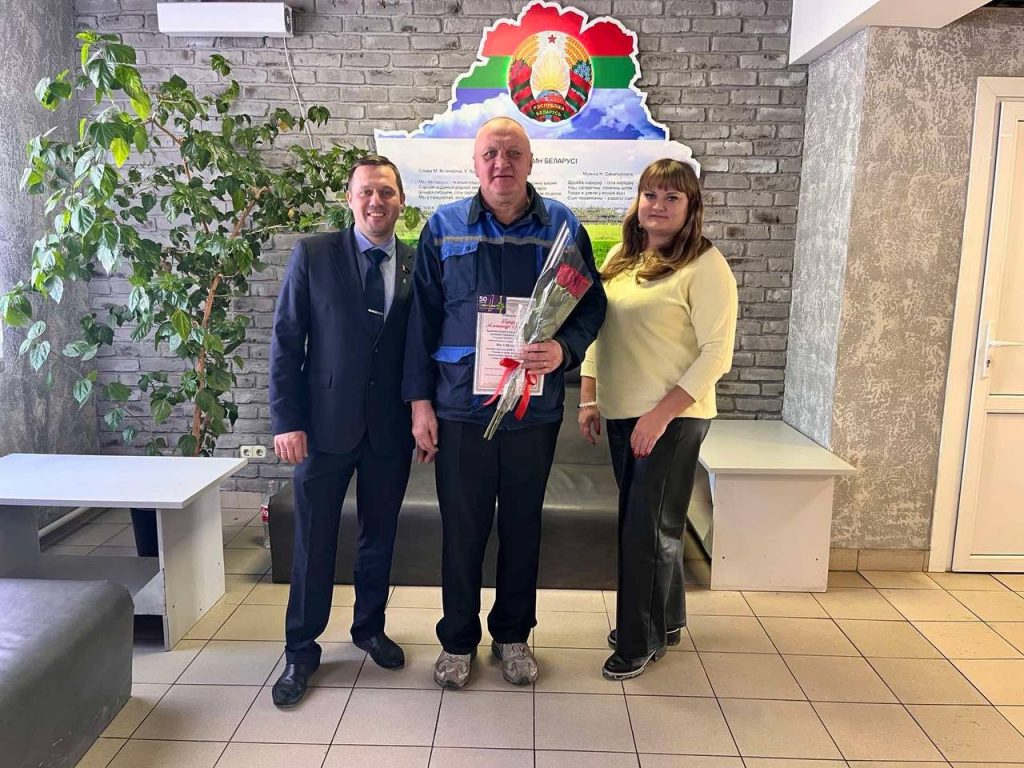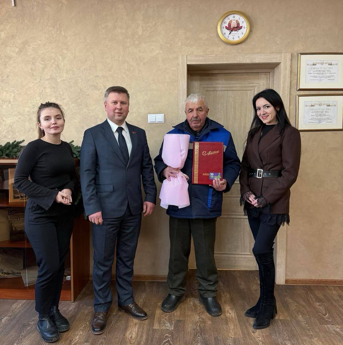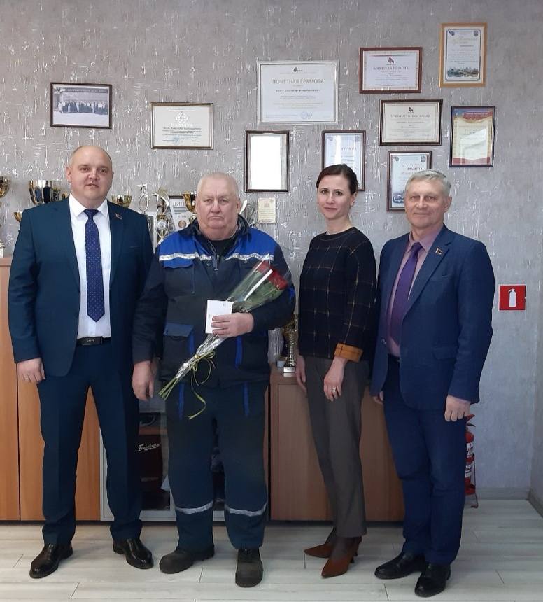 В филиале «Транспортный парк №2» с юбилеем поздравили слесаря-электрика Лишая Александра Федоровича и водителя Беленького Олега Максимовича. С многолетним трудовым стажем поздравили слесаря Русаковича Александра Адамовича.