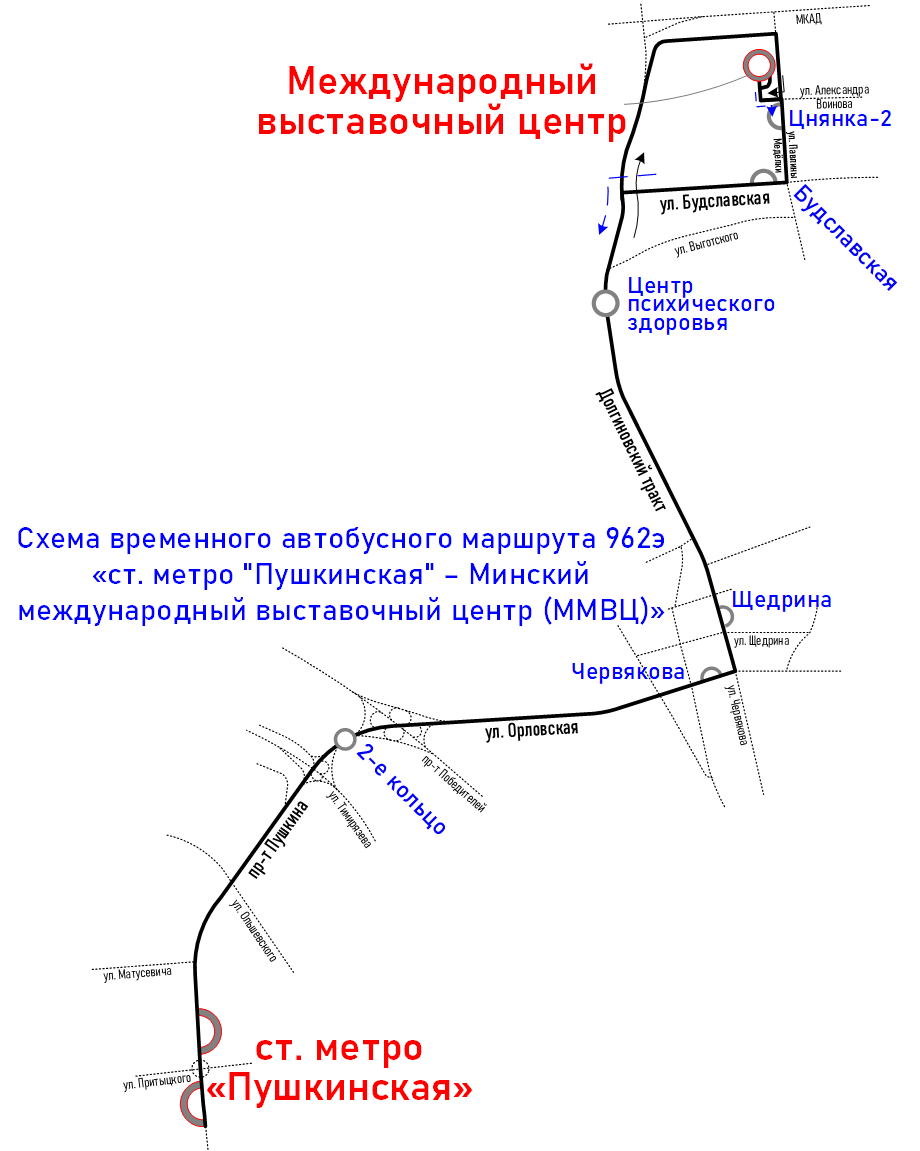 — № 962Э «ст.м. «Пушкинская» – Международный выставочный центр».