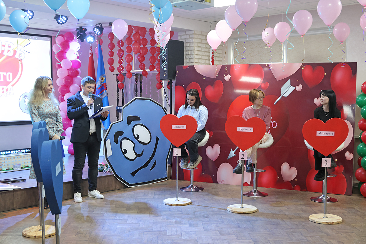 На первом этапе – «Приветствие» –  участники вкратце рассказывали о себе: работе, интересах, жизненных приоритетах. Нашелся среди представителей филиалов и романтичный молодой человек, уверенный в том, что любовь с первого взгляда существует не только в кино – Антон Ставицкий. Ведущие мероприятия – заместитель директора по идеологии, кадровой и социальной работе  АП-5 Виталий Черноокий и председатель профсоюзного комитета филиала Наталья Петровская – на этапе знакомства также задавали ребятам вопросы, позволяющие им лучше узнать друг друга. Например, как привлечь понравившегося молодого человека? Поинтересовались ведущие и тем, что с первого взгляда привлекает парней в девушках? Андрей признался, что «самое важное – это душа», только она способна его пленить. Для Антона оказалась важна уверенность девушки в себе, четкое понимание своих желаний, того, чего она хочет от жизни.