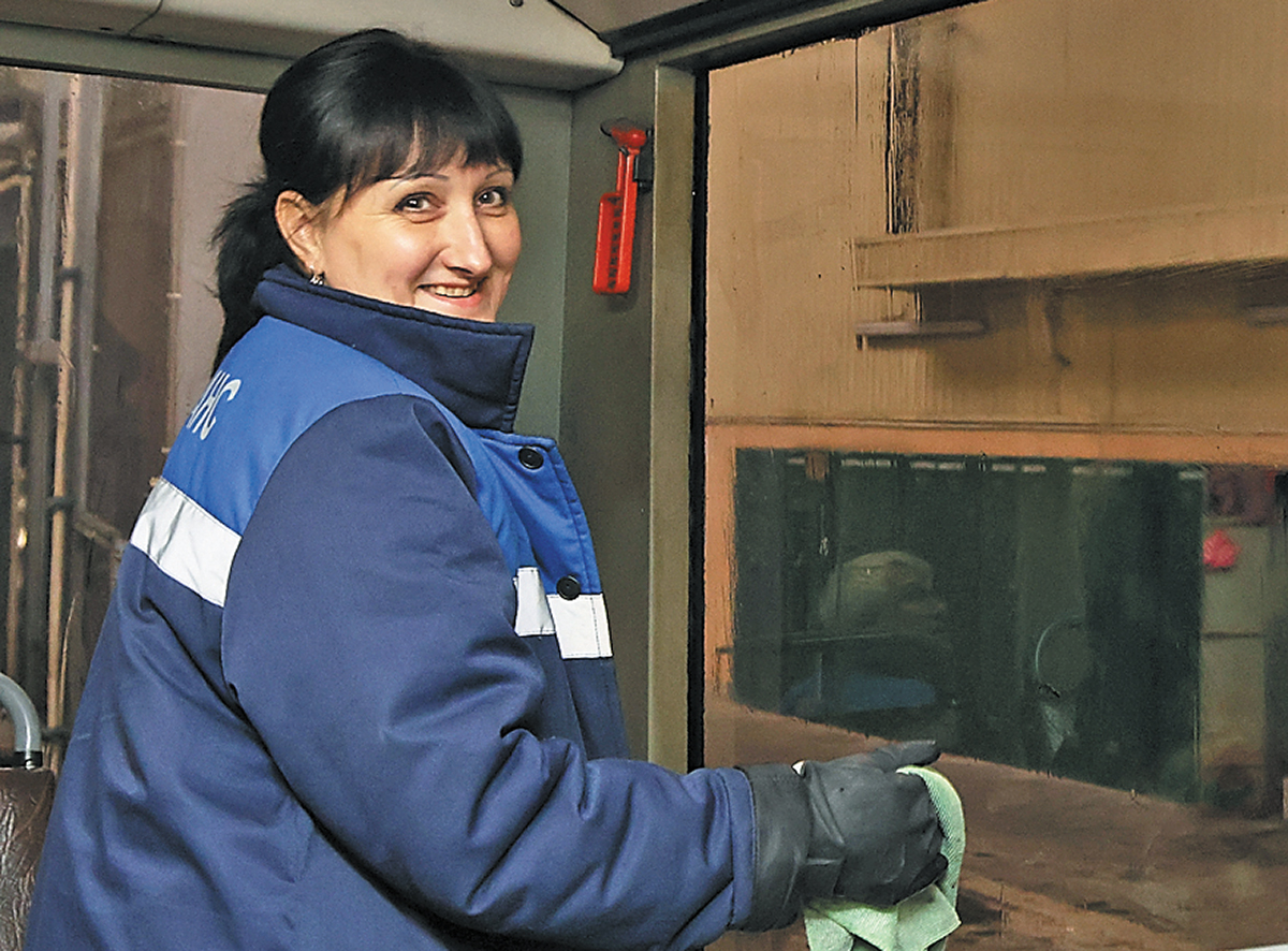 С наступлением зимнего периода работы у мойщиков подвижного состава только прибавляется. Грязь от зимней обуви в троллейбусах быстро собирается, особенно при большом потоке пассажиров. И уже с осени, как отмечает Людмила Грекович, находятся любители оставить следы от подошвы своей обуви на стенках троллейбуса.