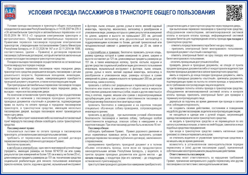 - Постановление Совета Министров Республики Беларусь от 22.11.2014 N 1088 «Об утверждении Правил перевозок пассажиров городским электрическим транспортом и Правил перевозок пассажиров метрополитеном»